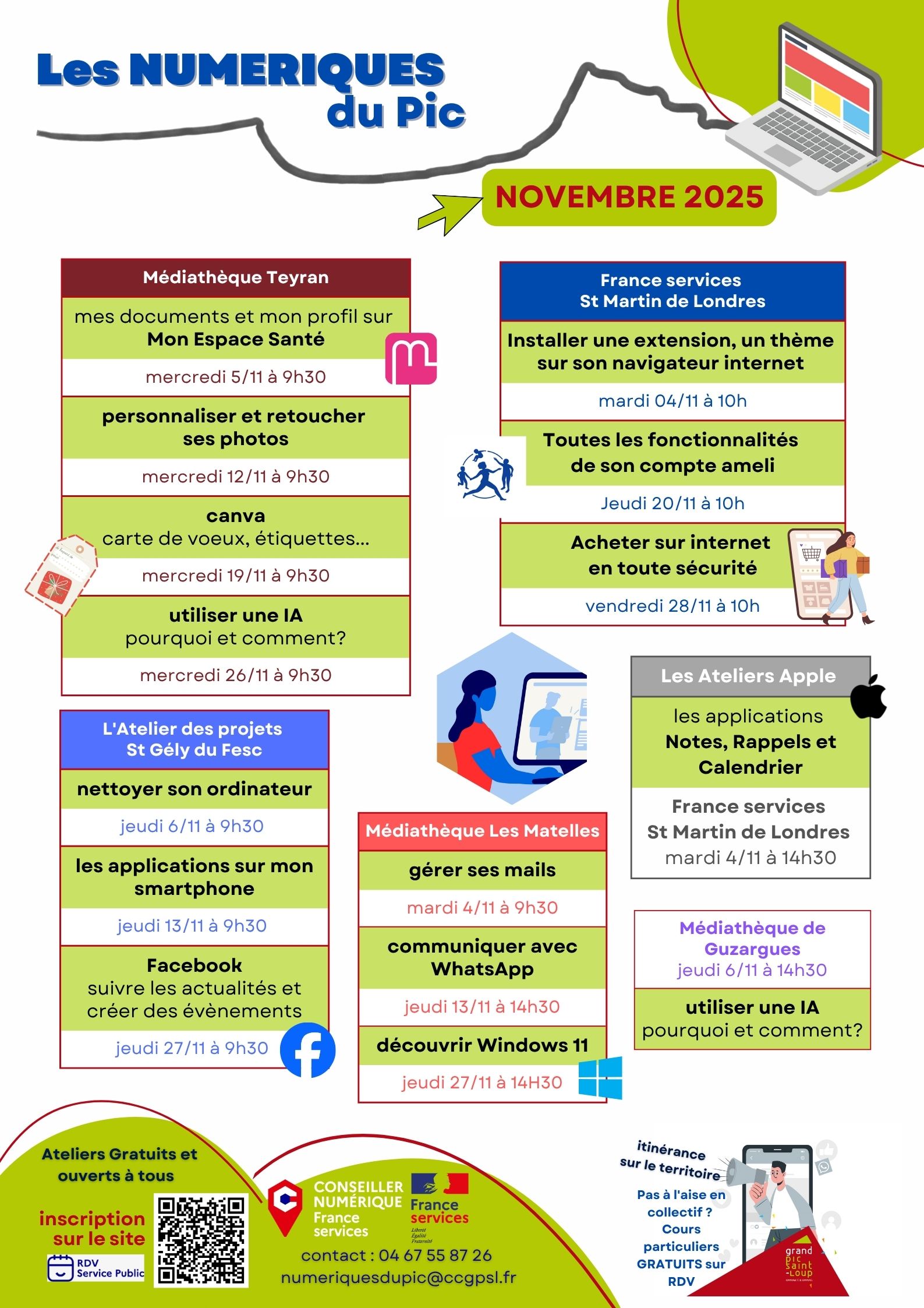 Voici le programme de nos ateliers numériques pour le mois de Novembre 2025.