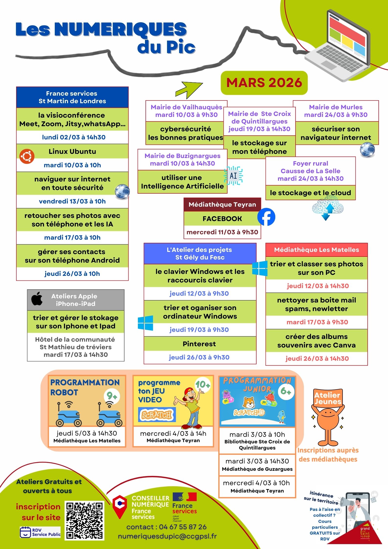 Voici le programme de nos ateliers numériques pour le mois de Mars 2026.