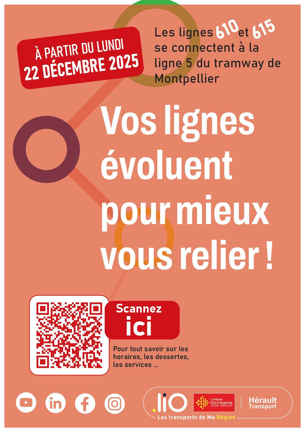 [liO Hérault Transport]-Information-Evolution ligne 610 / Tramway ligne 5