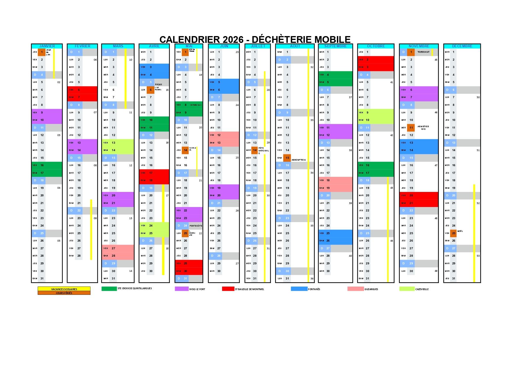 Pour connaître les dates de passage de la déchetterie mobile dans chaque commune, consultez le calendrier annuel, ci-dessus.